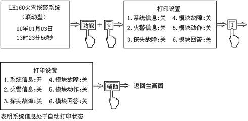 *主畫(huà)面下,按“功能”后,再按“*”,系統(tǒng)進(jìn)入打印設(shè)置畫(huà)面,選擇要打印的內(nèi)容,按與內(nèi)容對(duì)應(yīng)的數(shù)字,讓此內(nèi)容處于“開(kāi)”的狀態(tài)。若在監(jiān)控畫(huà)面下轉(zhuǎn)入主畫(huà)面,須按“功能”鍵再按“輔助”鍵再進(jìn)行相關(guān)設(shè)置。如圖一所示: