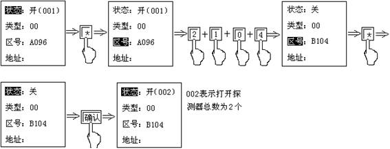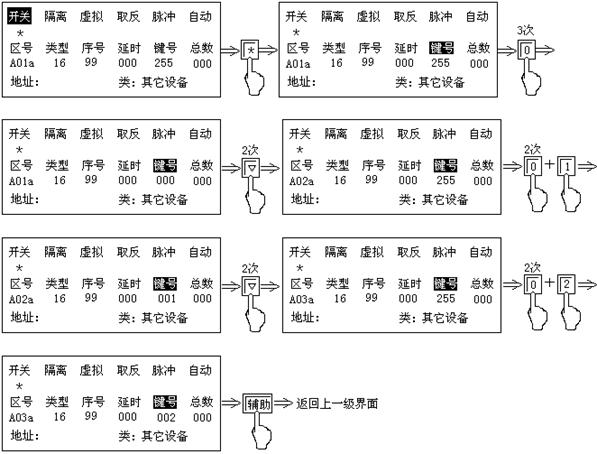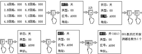 3.3)當(dāng)要將回路線上的探測(cè)器登記,可按“*”或“#”進(jìn)行設(shè)置,具體操作方法請(qǐng)參照探測(cè)器的自動(dòng)設(shè)置。