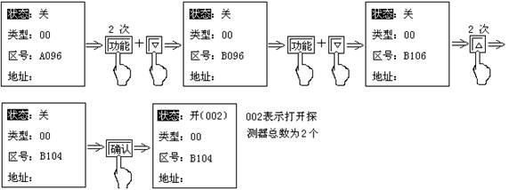 在某些特定情況下,回路中的探測(cè)器設(shè)置要求手動(dòng)設(shè)置,而不會(huì)影響控制器其它方面的設(shè)置,應(yīng)當(dāng)先選擇好要設(shè)置的區(qū)號(hào),然后選擇其對(duì)應(yīng)的狀態(tài)。