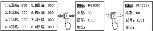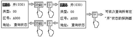 連續(xù)按“▽”鍵,可查找A回路中所有在“開(kāi)”狀態(tài)的探測(cè)器,或利用圖九所示方法查詢:
