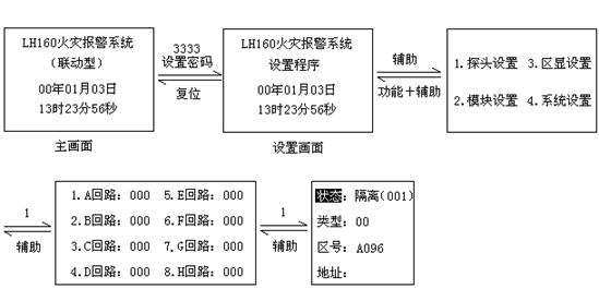 | 聯(lián)動(dòng) | “3333” →“輔助”→“2” | ①“▽”“△”選擇要隔離的區(qū)號(hào)②光標(biāo)移至“隔離” ③按“確認(rèn)” | 輔助 | |||