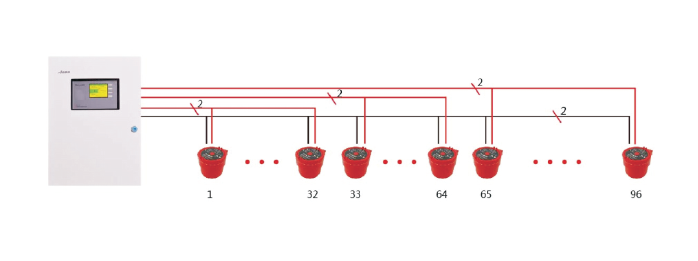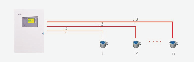 分線制系統(tǒng)(也稱多線制系統(tǒng))的每個(gè)檢測(cè)器與控制器之間有獨(dú)立的信號(hào)回路,所有檢測(cè)信號(hào)對(duì)于控制器是平行輸入的,這種方法又稱為點(diǎn)對(duì)點(diǎn)連接。分線制系統(tǒng)信號(hào)傳輸可靠,檢測(cè)器之間相對(duì)獨(dú)立,任何一個(gè)回路的運(yùn)行都不受其他回路故障的影響,而且電源配置簡(jiǎn)單,沒(méi)有嚴(yán)格的限制,單分線制系統(tǒng)布線較為復(fù)雜,特別在檢測(cè)器數(shù)量較多或檢測(cè)器與控制器間距較遠(yuǎn)時(shí),走線繁雜,安裝施工成本高,因此分線制系統(tǒng)適用于檢測(cè)器數(shù)量少,分布不集中,與控制器距離較近,且安全要求較高的場(chǎng)所。